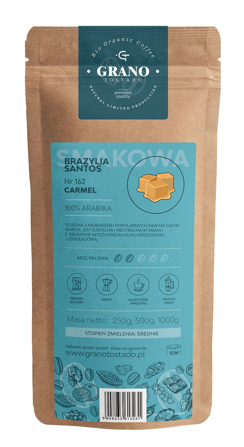Fundamentem naszych kaw smakowych jest popularna i neutralna smakowo kawa Brazylia Santos. Proces palenia wzbogacany jest o dodatki